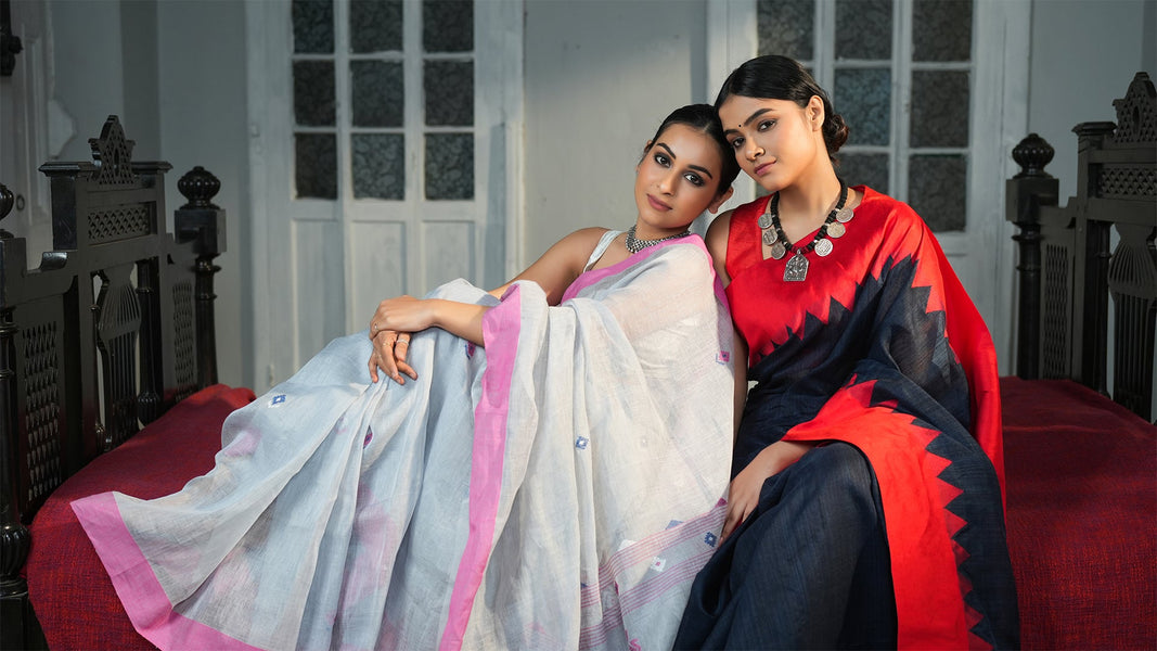Add to Wishlist Check it Out - Off White & Blue Saree