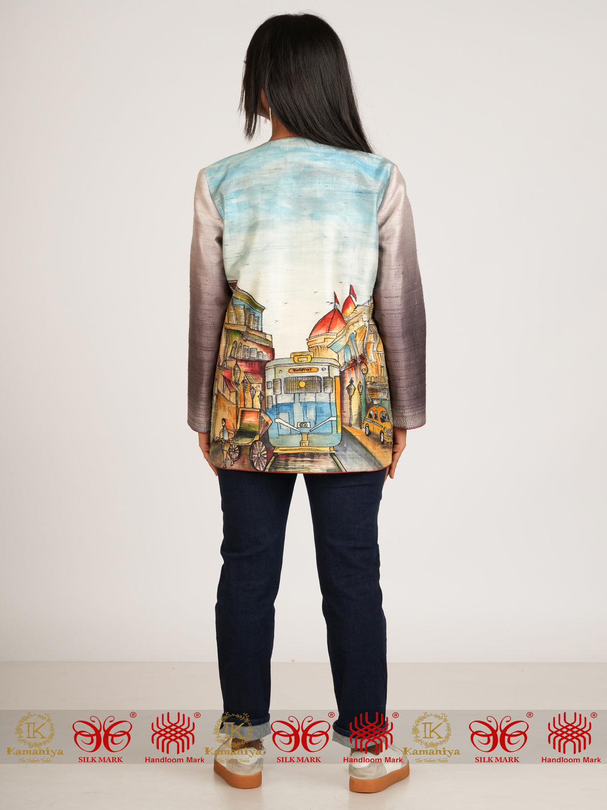 Feel like you belong to the city of Kolkata from your heart in this beautifully designed fusion theme coat. All motifs are essentially Bengali and bring out the best of this city of joy!